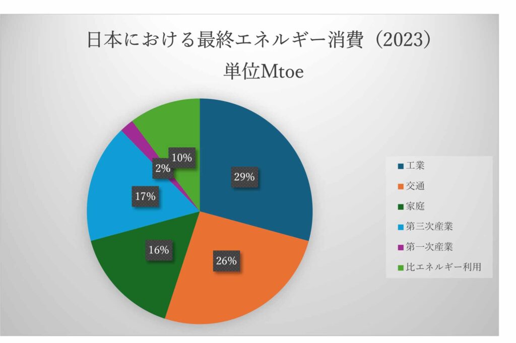 まずエネルギー消費の全体像を次のグラフで見て頂きましょう。2023年の消費実績から作成したものです。